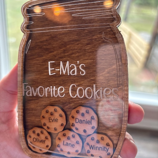 Crafted with care and attention to detail, this wood family magnet is a beautiful tribute to the special bond between grandma and grandkids. Each name is lovingly engraved into high-quality wood, creating a one-of-a-kind piece that Mom will treasure forever.