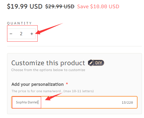 If you want to customize multiple names, separate each name with a coma. And add multiple options to the shopping cart.