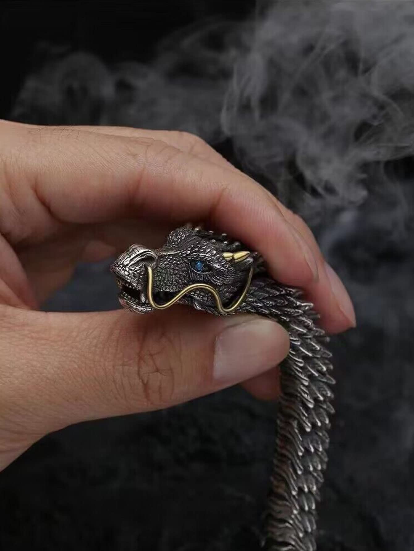 Dragons are often found on decorations. Waving the dragon bracelet is like dancing with a dragon. The silver dragon bracelet is a beautiful piece of jewelry and a talisman that brings good luck and protection.